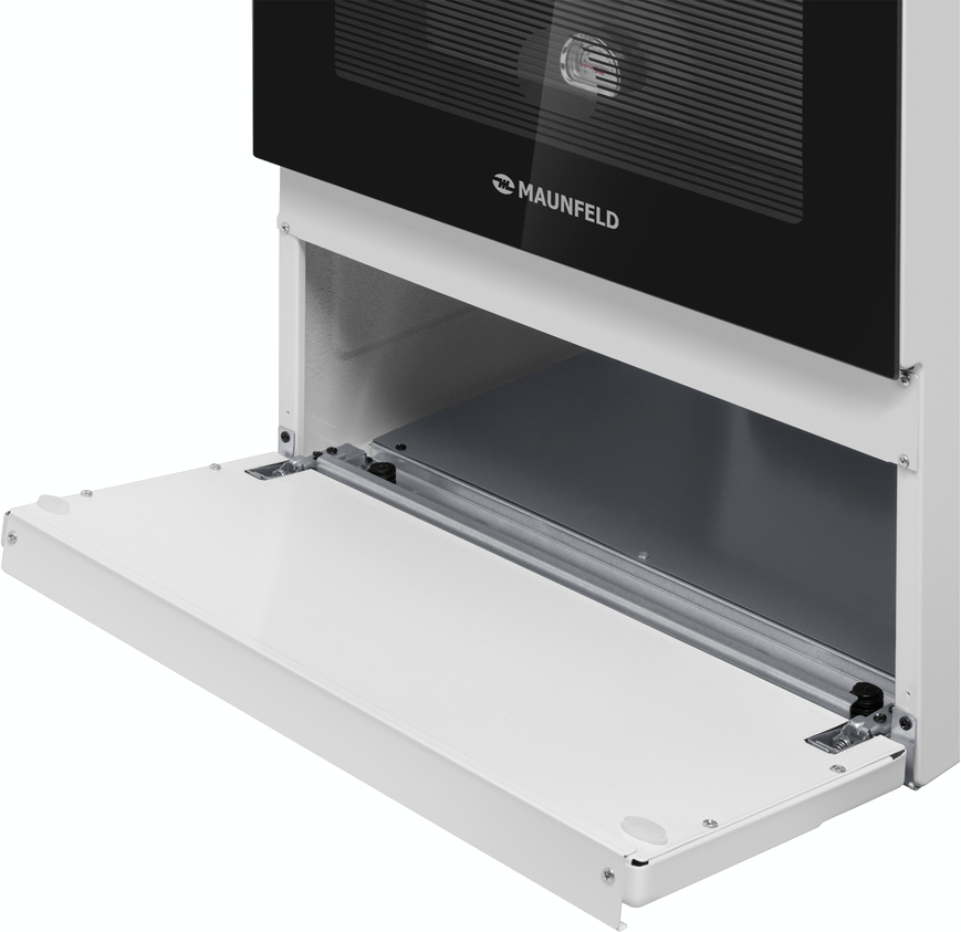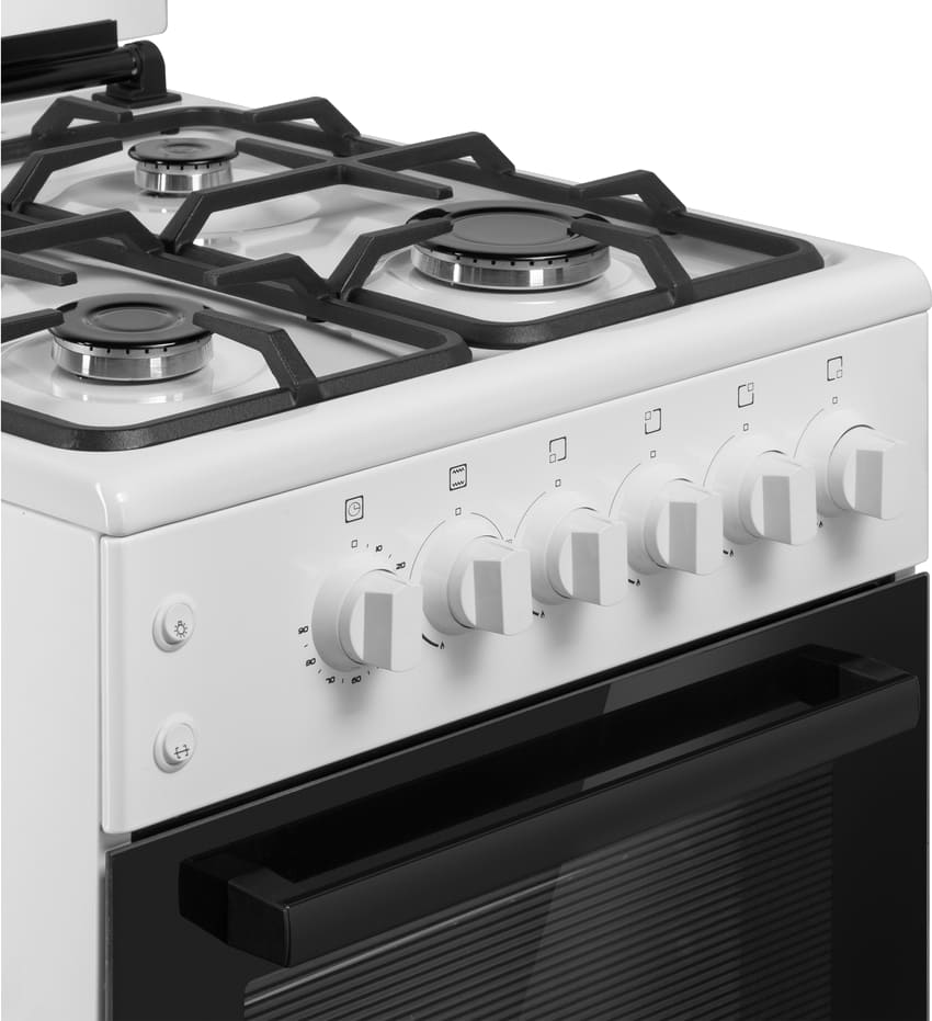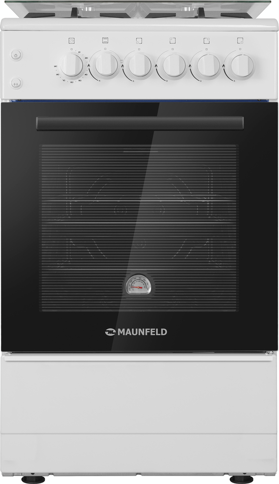 Газовая плита Maunfeld MGC50GCW02 — отличный выбор как для квартиры, так и для частного дома. Цвет корпуса белый, он гармонично сочетается с мебелью и техникой похожих оттенков, а также может интересно выглядеть на контрасте с ними. Для управления используется удобная и понятная механическая система. Благодаря ей выбирать режимы приготовления и настраивать параметры температуры очень просто. Переключатели не только выполняют техническую функцию, но и поддерживают общий дизайн; тип элементов: поворотные + кнопки.