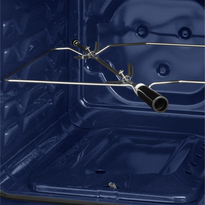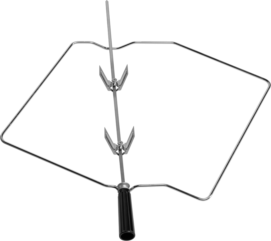 Совместное использование гриля и вертела в духовом шкафу позволяет готовить крупные, объемные блюда: большие куски мяса, цельную птицу или рыбу, баранью ногу, свиной окорок. Не менее удобен вертел при приготовлении порционных блюд — например, сосисок, шашлыка или люля-кебаба. Изготавливается вертел из пищевой нержавеющей стали, для фиксации продуктов служит специальная рама и съемные вилки с двумя или тремя зубцами. Вращающаяся конструкция позволяет быстро создать со всех сторон румяную корочку: вся жидкость при этом остается внутри куска и распределяется там равномерно благодаря вращению, так что приготовленное блюда становится особенно сочным.