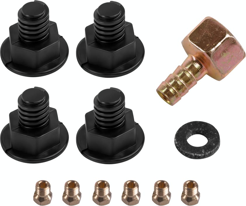 Форсунки, которые позволяют переключиться с природного на баллонный газ. Их можно установить под конфорками, чтобы топливо преобразовывалось в привычный нам огонь. Жиклеры представляют собой болты с отверстиями, которые диаметром соответствуют мощности конфорок.