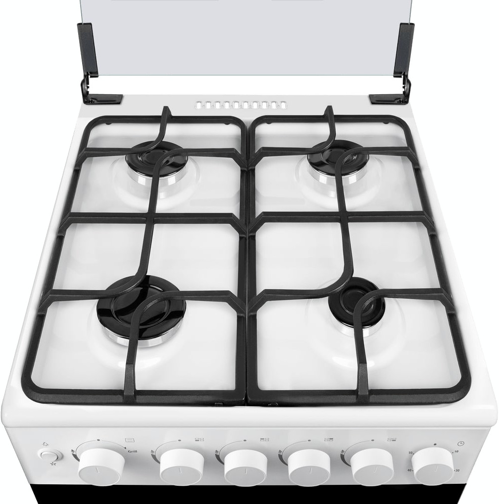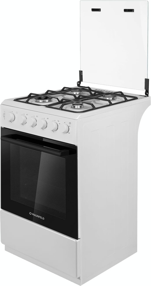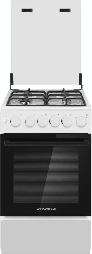 Газовая плита Maunfeld MGC50GCW08D — отличный выбор как для квартиры, так и для частного дома. Цвет корпуса белый, он гармонично сочетается с мебелью и техникой похожих оттенков, а также может интересно выглядеть на контрасте с ними. Для управления используется удобная и понятная механическая система. Благодаря ей выбирать режимы приготовления и настраивать параметры температуры очень просто. Переключатели не только выполняют техническую функцию, но и поддерживают общий дизайн; тип элементов: поворотные.