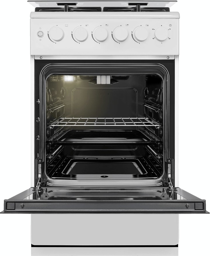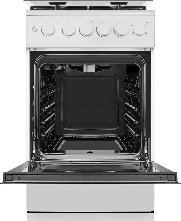 В данной модели установлена газовая варочная поверхность — эффективный нагрев, специальные механизмы для защиты вас от ожогов, плавная регулировка мощности. Стандартное количество конфорок — 4 штуки — подходит большинству пользователей. Панель сделана из металла, который обеспечивает надежность и долгий срок службы; за ней легко ухаживать.