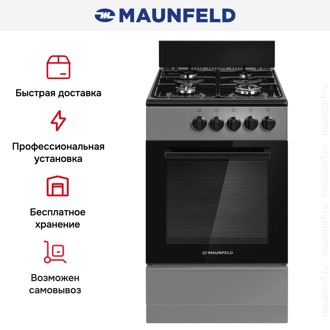 Газовая плита Maunfeld MGC50GEGR01D — стильное и функциональное решение для компактной кухни: корпус в спокойном сером оттенке гармонично дополняют черные фурнитура и поворотные переключатели, а откидная дверца с двумя стеклами придает аккуратный внешний вид и обеспечивает безопасность при эксплуатации; внутренняя камера объемом 50 литров покрыта эмалью, оснащена пятью уровнями приготовления и съемным внутренним стеклом, что облегчает уход, а функция паровой очистки позволяет поддерживать чистоту без агрессивной химии, сохраняя внешний вид и состояние эмали. Механическая система управления с аналоговой панелью и удобными поворотными ручками дает точный контроль над нагревом, а газ-контроль духовки обеспечивает защиту от случайного затухания пламени; тип варочной поверхности — газовая, выполненная из эмалированного металла, с четырехконфорочной компоновкой, включающей конфорки разной мощности: задняя левая 2 кВт, передняя левая 2 кВт, задняя правая 1 кВт и передняя правая 2,4 кВт, что дает свободу при готовке разных блюд одновременно; решетки также эмалированные, а в комплекте идут противень и составная стальная решетка для посуды, при этом предусмотрен выдвижной ящик для посуды и пятирельсовые рельефные направляющие для удобного размещения противней. При габаритах 85×50×61 см прибор легко вписывается в стандартные ниши, его вес 34,5 кг (нетто) обеспечивает устойчивость, а брутто 36 кг учитывает упаковку при доставке; электропараметры включают напряжение 220-240 В, частоту 50-60 Гц и общую мощность 9,7 кВт, при этом мощность нижнего нагревательного элемента составляет 2300 Вт, а класс энергопотребления A подтверждает экономичность в эксплуатации. Для удобства перехода на бытовые условия предусмотрена возможность переключения на сжиженный (баллонный) газ и наличие жиклеров для такого вида топлива; длина шнура питания 150 см обеспечивает гибкость при подключении, а набор технических характеристик и безопасных опций делает эту модель разумным выбором для семей, арендаторов и тех, кто ценит сочетание практичности и продуманного дизайна. В описании также указана комплектация и артикул КА-00018450, что упрощает идентификацию при заказе; модель отлично подойдет тем, кто ищет надежную, простую в обслуживании плиту с классической механикой управления и базовым набором функций, обеспечивающих качественное приготовление и удобство при ежедневном использовании. варочные центры Maunfeld MGC50GEGR01D