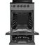Внутренняя поверхность имеет специальное защитное покрытие: эмаль легкой очистки хорошо аккумулирует и держит тепло, не нуждается в специфическом уходе. Следуйте инструкции для удаления загрязнений — и прибор прослужит вам много лет без повреждений. Отдельный газ-контроль для камеры дополнительно гарантирует безопасность использования. Продуманная система направляющих для противней предупреждает падение тяжелой посуды при ее загрузке и извлечении: в этой модели используются рельефные элементы. Приятный бонус — специальное отделение для хранения посуды и аксессуаров.