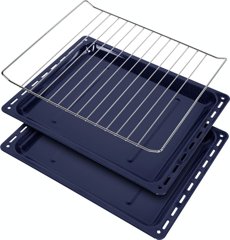 В комплект поставки вместе с варочным центром входят разнообразные аксессуары для приготовления пищи в духовом шкафу и на варочной панели. В стандартный комплект, как правило, включаются два противня — глубокий и мелкий. Мелкий противень предназначается для некоторых видов выпечки — например, печенья, открытых пирогов или пиццы. Глубокий противень подойдет для выпечки закрытых пирогов, приготовления запеканок, мясных и овощных блюд или блюд из птицы. Материалом изготовления таких противней может служить как металл с не пригорающим покрытием, так и нержавеющая или эмалированная сталь. Иногда один из противней изготавливается из жаропрочного стекла. Еще один обязательный элемент — решетка для приготовления на гриле. Решетка выполняется из нержавеющей стали: если на ней готовится мясо, птица или другие продукты, на дно камеры необходимо поместить поддон, в который будет стекать жир и сок, выделившийся при жарке.
