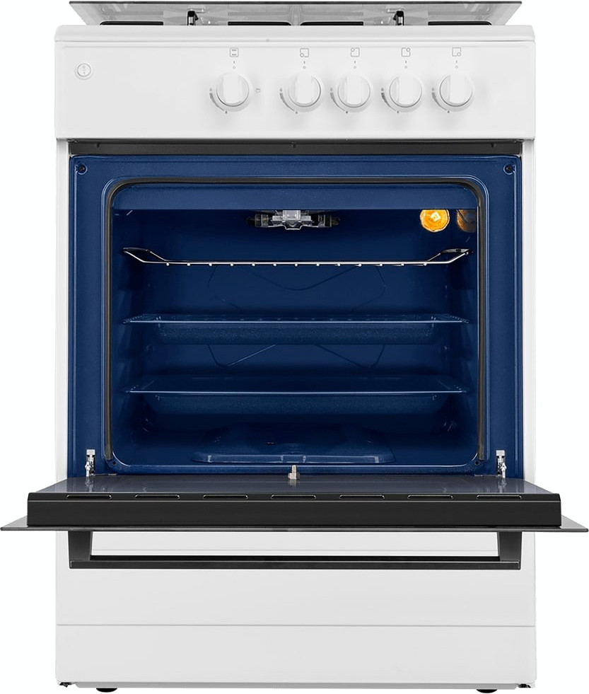 В данной модели установлена газовая варочная поверхность — эффективный нагрев, специальные механизмы для защиты вас от ожогов, плавная регулировка мощности. Стандартное количество конфорок — 4 штуки — подходит большинству пользователей. Панель сделана из металла, который обеспечивает надежность и долгий срок службы; за ней легко ухаживать.