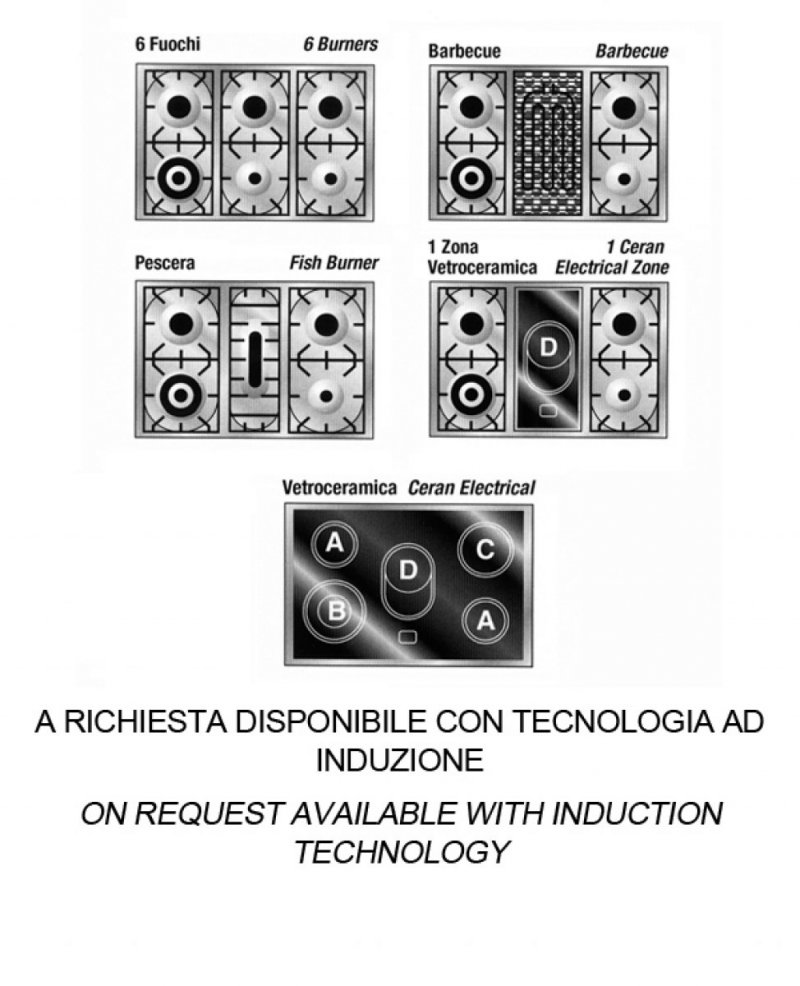 Ширина варочных центров — параметр, которых варьируется в самых больших пределах. Она зависит прежде всего от характеристик модели, в частности, от количества духовок. Производители предлагают модели минимальной шириной 59-60 см с одной духовкой. В магазинах также представлены модели с одной духовкой увеличенной ширины, которая достигает 90 см. Такую же ширину могут иметь варочные центры с двумя духовками, расположенными бок о бок. Модели Lofra с тремя духовками имеют ширину 120 см, а максимальная ширина около 196-200 см отличает модели Restart с дровяной печью и несколькими духовками.