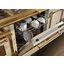 Устройства с тремя духовками также имеют один основной и две дополнительных шкафа разного объема: например, плиты Bertazzoni оснащены большой духовкой объемом 69 литров, средней объемом 54 литра и малой объемом 24 литра. Духовки располагаются в два ряда: две меньшие духовки в одном ряду, большая и ящик для посуды в другом.