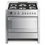 Ширина варочных центров — параметр, которых варьируется в самых больших пределах. Она зависит прежде всего от характеристик модели, в частности, от количества духовок. Производители предлагают модели минимальной шириной 59-60 см с одной духовкой. В магазинах также представлены модели с одной духовкой увеличенной ширины, которая достигает 90 см. Такую же ширину могут иметь варочные центры с двумя духовками, расположенными бок о бок. Модели Lofra с тремя духовками имеют ширину 120 см, а максимальная ширина около 196-200 см отличает модели Restart с дровяной печью и несколькими духовками.