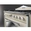 Устройства с тремя духовками также имеют один основной и две дополнительных шкафа разного объема: например, плиты Bertazzoni оснащены большой духовкой объемом 69 литров, средней объемом 54 литра и малой объемом 24 литра. Духовки располагаются в два ряда: две меньшие духовки в одном ряду, большая и ящик для посуды в другом.