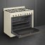 Устройства с тремя духовками также имеют один основной и две дополнительных шкафа разного объема: например, плиты Bertazzoni оснащены большой духовкой объемом 69 литров, средней объемом 54 литра и малой объемом 24 литра. Духовки располагаются в два ряда: две меньшие духовки в одном ряду, большая и ящик для посуды в другом.