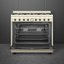 Варочный центр Smeg кремового цвета выполнен в классическом дизайне Coloniale — он отлично впишется в интерьер с обилием декоративных элементов. Поворотные регуляторы и ручка двери латунного цвета. Панель управления механическая, по центру расположен аналоговый таймер, помогает следить за показателями времени и температуры.