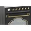 Устройства с тремя духовками также имеют один основной и две дополнительных шкафа разного объема: например, плиты Bertazzoni оснащены большой духовкой объемом 69 литров, средней объемом 54 литра и малой объемом 24 литра. Духовки располагаются в два ряда: две меньшие духовки в одном ряду, большая и ящик для посуды в другом.
