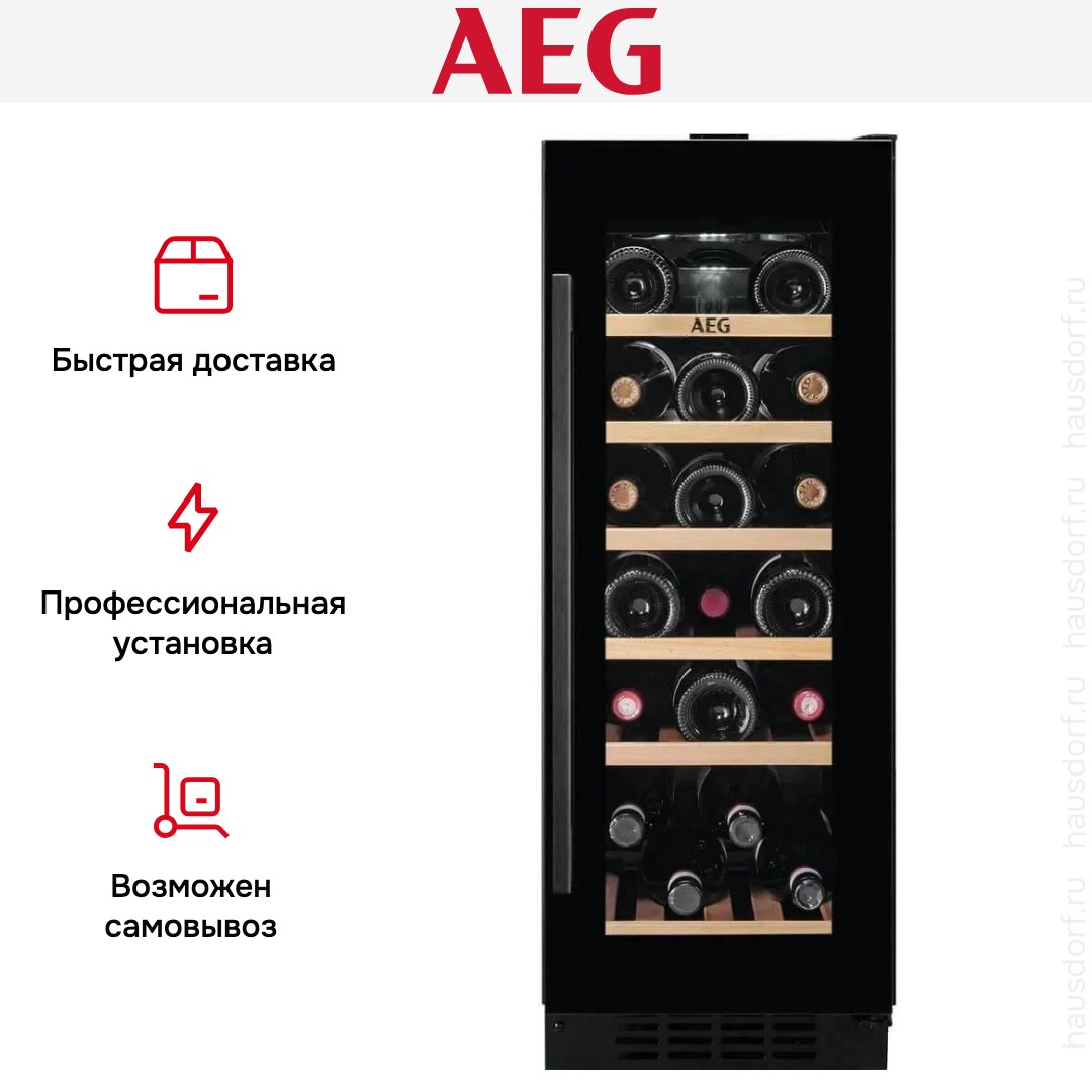 Винный холодильник AEG AWUS020B5B имеет одну температурную зону, в которой можно разместить бутылки и единовременно выставить только одну комбинацию настроек. Он встраивается в нишу, что удобно, если у вас ограничен метраж помещения. Благодаря компактным размерам данная модель — отличный выбор для офиса, гостиничного номера. Количество бутылок, которое можно разместить с учетом полной комплектации и из расчета объема бутылки 0,75 л, — 20 шт.