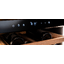 Встраиваемые холодильники для вина оснащаются специальной системой вентиляции: охлаждающая система у них находится в нижней части корпуса спереди. На такие устройства не навешивается мебельный фасад: дверца с затемненным стеклом остается на виду и открывается на достаточно широкий угол для свободного выдвижения деревянных полок.