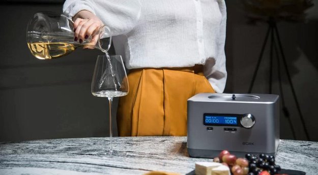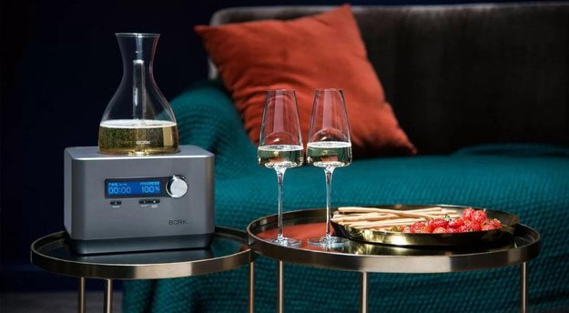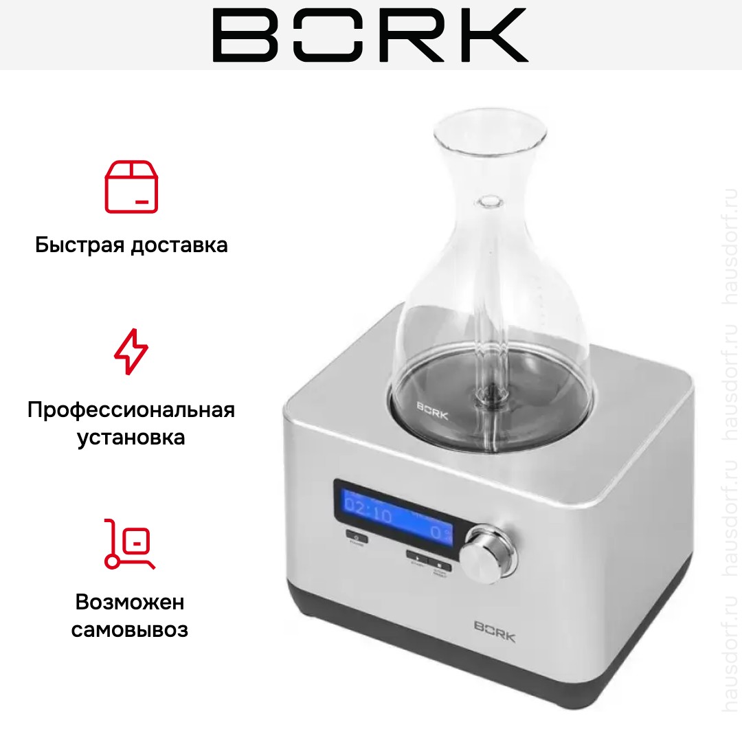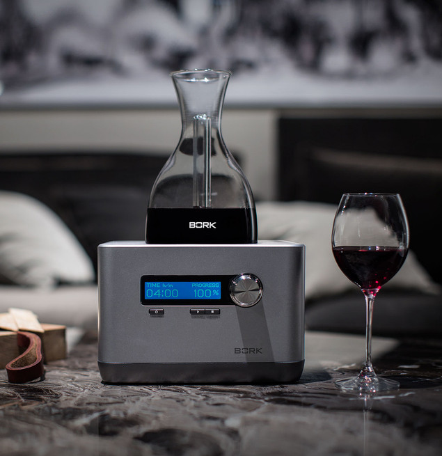 Кислородное декантирование вина необходимо для раскрытия вкуса и аромата, нейтрализации танинов. Прибор BORK ускоряет этот процесс в 60 раз, поэтому напиток не успевает изменить температуру. Аэрация проходит равномерно благодаря усовершенствованной форме графина.