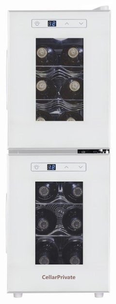 Винный холодильник CellarPrivate CP012-2W имеет две температурные зоны, в которых одновременно можно хранить разные сорта алкоголя и выставлять разные сочетания настроек. Он устанавливается отдельно, что удобно, если у вас есть специальное помещение — кладовая, погреб и т.д. Благодаря компактным размерам данная модель — отличный выбор для офиса, гостиничного номера. Количество бутылок, которое можно разместить с учетом полной комплектации и из расчета объема бутылки 0,75 л, — 12 шт.
