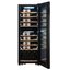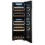 Стеклянная дверь — дополнительный изящный штрих к общему дизайну модели. Специальное покрытие защищает вино от влияния ультрафиолетовых лучей, которые проникают, если шкаф находится в солнечной комнате. Цвет корпуса — черный.