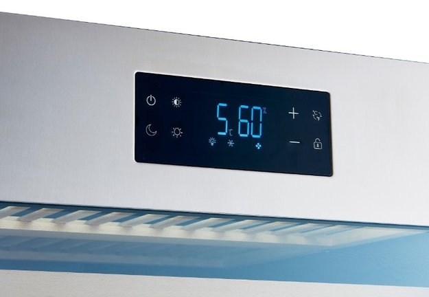 Большинство современных винных шкафов имеет электронное управление, они могут оснащаться обычными цифровыми дисплеями, на которых будет отображаться минимум информации — о включении, температуре в камере и возникших неисправностях. Однако в большинстве моделей используются текстовые сенсорные дисплеи из нескольких сегментов. С помощью кнопок сенсорного меню на этих дисплеях можно отображать и регулировать температуру в каждой зоне отдельно с точностью до градуса, выбирать уровень влажности, задавать дополнительные опции — отключение сигнализации, включение вентиляции и внутреннего освещения, активацию защиты от детей, тип отображения температуры ºF/ºC. Здесь же будут появляться коды ошибок, выданные системой обнаружения неисправностей.