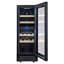 Стеклянная дверь — дополнительный изящный штрих к общему дизайну модели. Специальное покрытие защищает вино от влияния ультрафиолетовых лучей, которые проникают, если шкаф находится в солнечной комнате. Цвет корпуса — черный. Дверь можно перевесить на другую сторону, поэтому вариантов размещения его в доме становится больше.