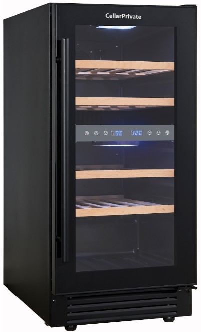 Винный холодильник CellarPrivate CP027-2TB имеет две температурные зоны, в которых одновременно можно хранить разные сорта алкоголя и выставлять разные сочетания настроек. Он встраивается в нишу, что удобно, если у вас ограничен метраж помещения. Благодаря компактным размерам данная модель — отличный выбор для офиса, гостиничного номера. Количество бутылок, которое можно разместить с учетом полной комплектации и из расчета объема бутылки 0,75 л, — 27 шт.