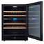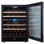 Стеклянная дверь — дополнительный изящный штрих к общему дизайну модели. Специальное покрытие защищает вино от влияния ультрафиолетовых лучей, которые проникают, если шкаф находится в солнечной комнате. Цвет корпуса — черный. Дверь можно перевесить на другую сторону, поэтому вариантов размещения его в доме становится больше.