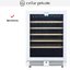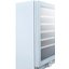 Стеклянная дверь — дополнительный изящный штрих к общему дизайну модели. Специальное покрытие защищает вино от влияния ультрафиолетовых лучей, которые проникают, если шкаф находится в солнечной комнате. Цвет корпуса — белый. Дверь можно перевесить на другую сторону, поэтому вариантов размещения его в доме становится больше.