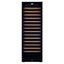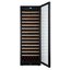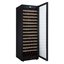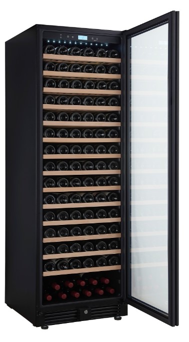 Стеклянная дверь — дополнительный изящный штрих к общему дизайну модели. Специальное покрытие защищает вино от влияния ультрафиолетовых лучей, которые проникают, если шкаф находится в солнечной комнате. Цвет корпуса — черный. Дверь можно перевесить на другую сторону, поэтому вариантов размещения его в доме становится больше.