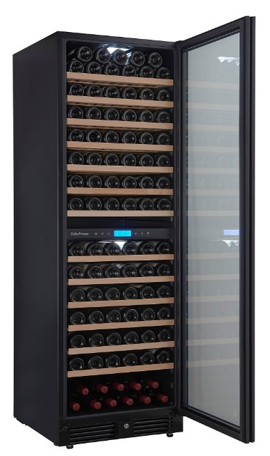 Винный холодильник CellarPrivate CP165-2TBH имеет две температурные зоны, в которых одновременно можно хранить разные сорта алкоголя и выставлять разные сочетания настроек. Он встраивается в нишу, что удобно, если у вас ограничен метраж помещения. Количество бутылок, которое можно разместить с учетом полной комплектации и из расчета объема бутылки 0,75 л, — 163 шт.