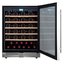 Дверца у большинства винных шкафов изготавливается из многослойного тонированного стекла. Такой материал, с одной стороны, позволяет оценивать коллекцию вин визуально, не открывая дверцу, в условиях стабильной температуры и влажности. С другой стороны, затемненное стекло с УФ-фильтром в виде напыления или специальной пленки надежно изолирует винные бутылки негативного воздействия ультрафиолетового излучения. Несколько слоев стекла обеспечивают при этом дополнительную защиту. Очень часто стекло в дверце заключается в рамку из дерева или металла. Натуральный или окрашенный металл или дерево не только способствуют прочности конструкции, но и превращают винный холодильник, особенно отдельно стоящий, в эффектный элемент обстановки.