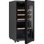 Стеклянная дверь — дополнительный изящный штрих к общему дизайну модели. Специальное покрытие защищает вино от влияния ультрафиолетовых лучей, которые проникают, если шкаф находится в солнечной комнате. Цвет корпуса — черный.