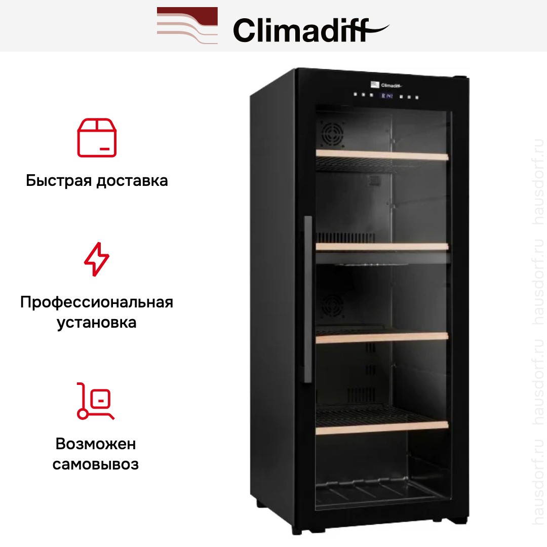 Винный холодильник Climadiff CLD115B1 имеет две температурные зоны, в которых одновременно можно хранить разные сорта алкоголя и выставлять разные сочетания настроек. Он устанавливается отдельно, что удобно, если у вас есть специальное помещение — кладовая, погреб и т.д. Количество бутылок, которое можно разместить с учетом полной комплектации и из расчета объема бутылки 0,75 л, — 56 шт.