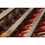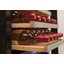 Полки в винных шкафах позволяют размещать бутылки для хранения в горизонтальном положении. Это необходимо, чтобы пробка постоянно смачивалась жидкостью и не пересыхала. Плотно закрытая пробка гарантирует, что внутрь бутылки не проникнет наружный воздух. Кислород, содержащийся в воздухе, может стать причиной ухудшения вкуса вина и даже его скисания. Кроме того, горизонтальное положение позволяет лучше оценить количество осадка. Материал изготовления полок выбирается, исходя из требований, предъявляемых к содержанию коллекции вин. Одним из основных требования является отсутствие или максимальное сокращение вибрации и хорошая фиксация бутылок на месте хранения. Даже если полка выдвигается, бутылки должны оставаться на своем месте. Второе требование исключает применение стеклянных полок, как в обычном холодильнике: на них почти невозможно зафиксировать бутылки.