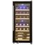Производители предлагают винные шкафы, оснащенные одной, двумя, тремя и четырьмя камерами, которые могут располагаться как друг под другом, так бок и бок. Самые популярные — однокамерные модели, ассортимент которых особенно широк, но втором месте — двухкамерные. Над заметить, что количество камер не зависит напрямую от габаритов изделия: например, однокамерные модели увеличенных габаритов — далеко не редкость. Их высота может варьироваться в пределах от 14 см до 219 см, а ширина — от 13 см до 150 см.