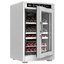 Производители предлагают винные шкафы, оснащенные одной, двумя, тремя и четырьмя камерами, которые могут располагаться как друг под другом, так бок и бок. Самые популярные — однокамерные модели, ассортимент которых особенно широк, но втором месте — двухкамерные. Над заметить, что количество камер не зависит напрямую от габаритов изделия: например, однокамерные модели увеличенных габаритов — далеко не редкость. Их высота может варьироваться в пределах от 14 см до 219 см, а ширина — от 13 см до 150 см.