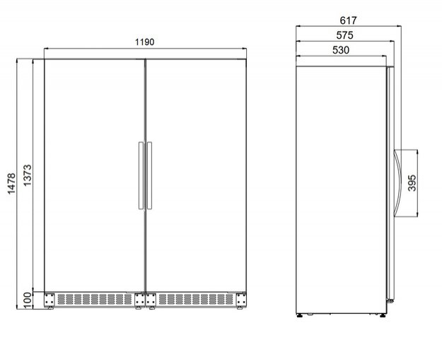 Глухая дверь без стекла надежно защищает вино от влияния ультрафиолетовых лучей, которые проникают, если шкаф находится в солнечной комнате. Это гарантирует также герметичное хранение. Цвет корпуса — черный. Дверь можно перевесить на другую сторону, поэтому вариантов размещения его в доме становится больше.
