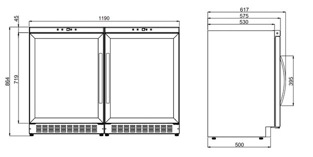 Винный холодильник Dometic B68G Double Basic имеет две температурные зоны, в которых одновременно можно хранить разные сорта алкоголя и выставлять разные сочетания настроек. Он устанавливается отдельно, что удобно, если у вас есть специальное помещение — кладовая, погреб и т.д. Благодаря компактным размерам данная модель — отличный выбор для офиса, гостиничного номера. Количество бутылок, которое можно разместить с учетом полной комплектации и из расчета объема бутылки 0,75 л, — 136 шт.