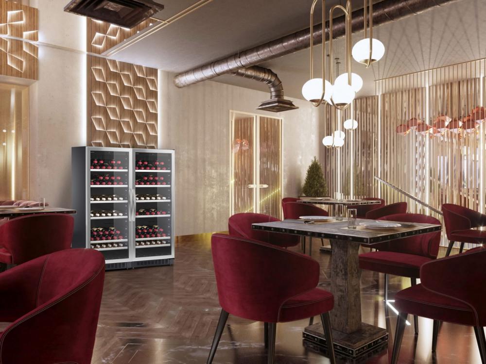 Ширина винного шкафа, как и другие их габариты, обязательно учитывается при выборе модели для домашнего или профессионального использования. Встраиваемые и отдельно стоящие модели выпускаются в самом широком ассортименте, так что разброс значений максимально велик. Неизменным спросом пользуются винные шкафы стандартной ширины — от 40 до 80 см, в современном и классическом стиле. Для встраиваемых шкафов наиболее удобной является ширина 60 см, позволяющая устанавливать их в кухонную тумбу или колонну. Вместимость их может быть самой различной и зависит в большей степени от высоты прибора. Маленькие винные шкафы с размещением на столешнице или даже с креплением к стене, рассчитанные на хранение от одной до десяти бутылок, могут иметь минимальную ширину от 13 см. На полках у них обычно помещается не более 5 бутылок, и используются они для охлаждения вина перед подачей. Большие винные шкафы с несколькими камерами и температурными зонами для длительного хранения и созревания разных сортов вина могут иметь ширину до 180 см, а максимальное значение этого параметра может составить 300 см. Как правило, это отдельно стоящие модели в деревянном корпусе с камерами side-by-side.