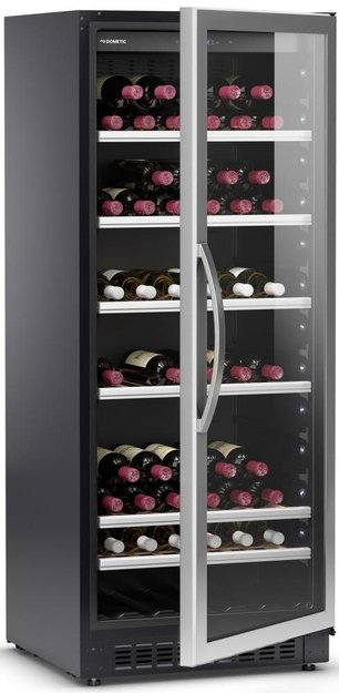 Винный холодильник Dometic C101G Double Wooden Wenge имеет две температурные зоны, в которых одновременно можно хранить разные сорта алкоголя и выставлять разные сочетания настроек. Он устанавливается отдельно, что удобно, если у вас есть специальное помещение — кладовая, погреб и т.д. Количество бутылок, которое можно разместить с учетом полной комплектации и из расчета объема бутылки 0,75 л, — 202 шт.