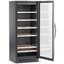 Электронное управление помогает быстро разобраться в том, как функционирует эта модель, и легко настроить все необходимые параметры. На дисплее отображаются данные, которые собирают датчики в камере. Лампочки, расположенные внутри, хорошо подсвечивают бутылки. Всего полок, на которых можно разместить коллекцию, в шкафу 6 шт. Пространство тщательно вентилируется, чтобы воздух не застаивался, не попадали посторонние запахи.