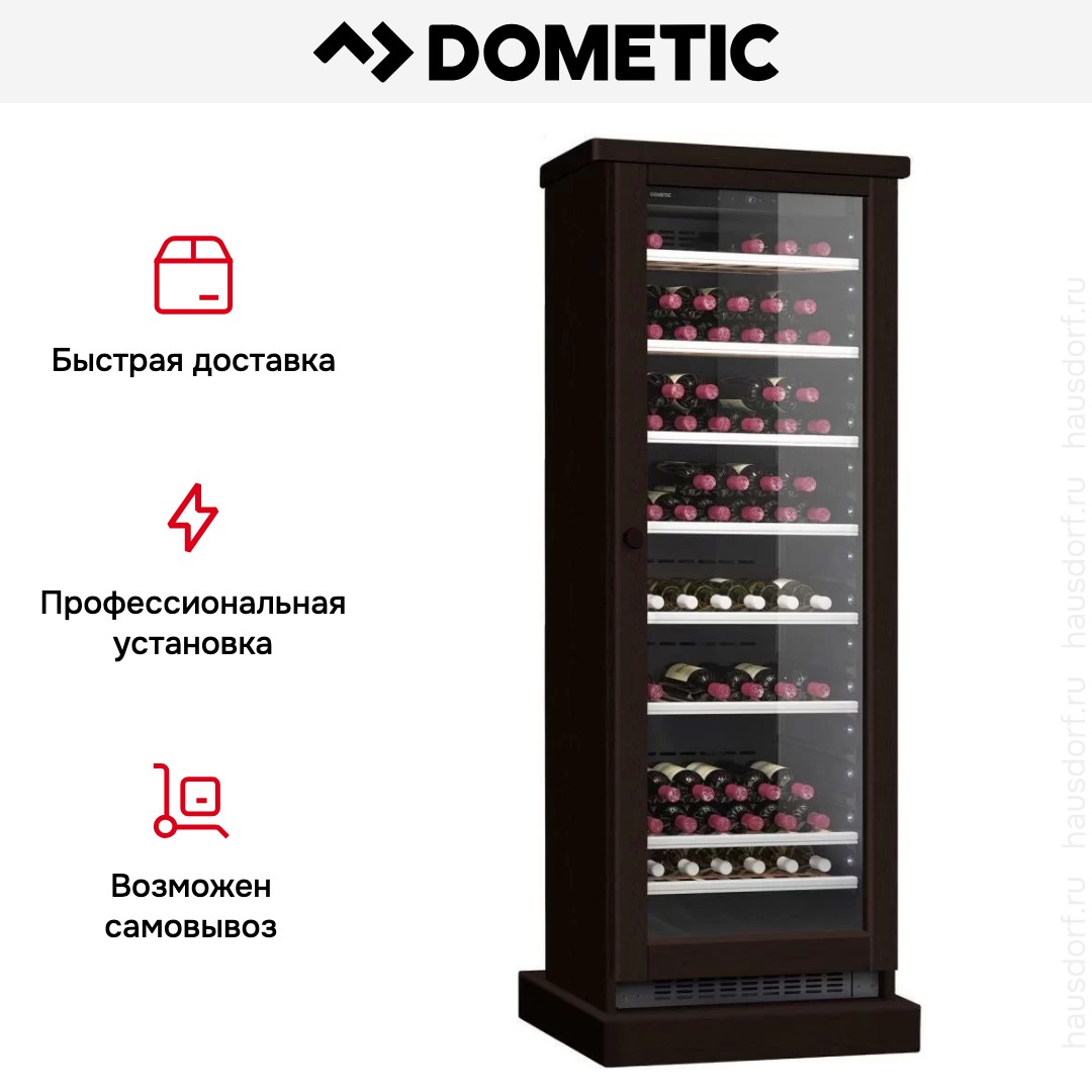 Винный холодильник Dometic C125G Wooden Wenge имеет одну температурную зону, в которой можно разместить бутылки и единовременно выставить только одну комбинацию настроек. Он устанавливается отдельно, что удобно, если у вас есть специальное помещение — кладовая, погреб и т.д. Количество бутылок, которое можно разместить с учетом полной комплектации и из расчета объема бутылки 0,75 л, — 125 шт.
