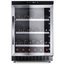 Дверца у большинства винных шкафов изготавливается из многослойного тонированного стекла. Такой материал, с одной стороны, позволяет оценивать коллекцию вин визуально, не открывая дверцу, в условиях стабильной температуры и влажности. С другой стороны, затемненное стекло с УФ-фильтром в виде напыления или специальной пленки надежно изолирует винные бутылки негативного воздействия ультрафиолетового излучения. Несколько слоев стекла обеспечивают при этом дополнительную защиту. Очень часто стекло в дверце заключается в рамку из дерева или металла. Натуральный или окрашенный металл или дерево не только способствуют прочности конструкции, но и превращают винный холодильник, особенно отдельно стоящий, в эффектный элемент обстановки.