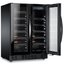 Компактный винный шкаф с двумя температурными зонами для хранения 40 бутылок. Климатические условия в камерах регулируются независимо друг от друга. Для контроля влажности используется специальный поддон, воздух очищается с помощью угольного фильтра.