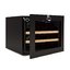 Производители предлагают винные шкафы, оснащенные одной, двумя, тремя и четырьмя камерами, которые могут располагаться как друг под другом, так бок и бок. Самые популярные — однокамерные модели, ассортимент которых особенно широк, но втором месте — двухкамерные. Над заметить, что количество камер не зависит напрямую от габаритов изделия: например, однокамерные модели увеличенных габаритов — далеко не редкость. Их высота может варьироваться в пределах от 14 см до 219 см, а ширина — от 13 см до 150 см.