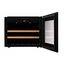 Современные винные шкафы всех типов, в том числе компрессорные, темоэлектрические и абсорбционные, оснащаются электронной системой управления — кнопочной или сенсорной. Панель управления, с помощью которой производится регулировка параметров работы, может размещаться внутри винного шкафа за дверцей или снаружи в верхней части корпуса. Второй вариант более удобен, поскольку для изменения параметров не нужно открывать дверцу. Кроме того, такое расположение панели управления позволяет поддерживать более стабильную температуру в камере. Однако для больших винных шкафов в классическом стиле из ценных пород дерева предпочтительнее скрытая панель управления, которая не портит их внешний вид.