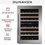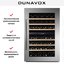 Dunavox DAB-42.117DSS — компрессорный винный шкаф, рассчитанный на одновременное хранение до 42 бутылок объемом 0.75 л. Модель характеризуется динамическим типом охлаждения и предусматривает наличие двух независимых температурных зон. Возможность перенавешивания дверцы гарантирует комфортную интеграцию устройства в готовый кухонный интерьер.