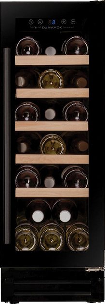 Винный холодильник Dunavox DAUF-19.58MB имеет одну температурную зону, в которой можно разместить бутылки и единовременно выставить только одну комбинацию настроек. Он встраивается в нишу, что удобно, если у вас ограничен метраж помещения. Благодаря компактным размерам данная модель — отличный выбор для офиса, гостиничного номера. Количество бутылок, которое можно разместить с учетом полной комплектации и из расчета объема бутылки 0,75 л, — 19 шт.