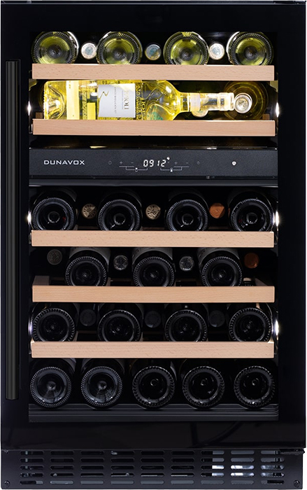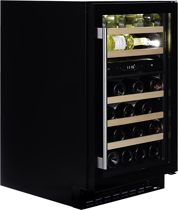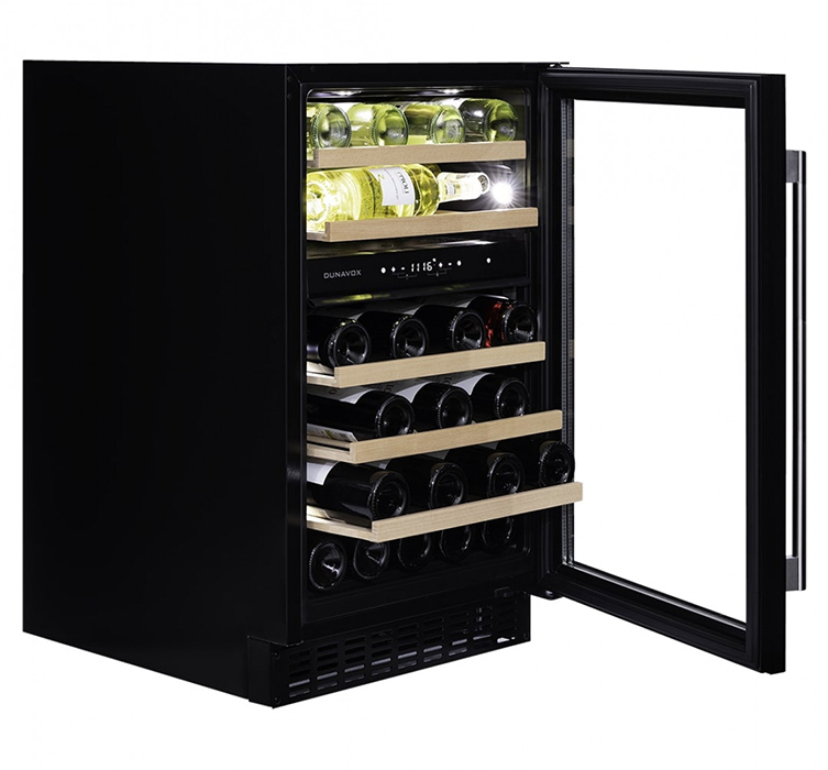 Винный холодильник Dunavox DAUF-38.100DMB имеет две температурные зоны, в которых одновременно можно хранить разные сорта алкоголя и выставлять разные сочетания настроек. Он встраивается в нишу, что удобно, если у вас ограничен метраж помещения. Благодаря компактным размерам данная модель — отличный выбор для офиса, гостиничного номера. Количество бутылок, которое можно разместить с учетом полной комплектации и из расчета объема бутылки 0,75 л, — 38 шт.