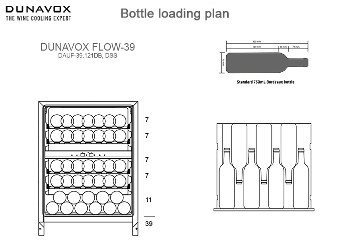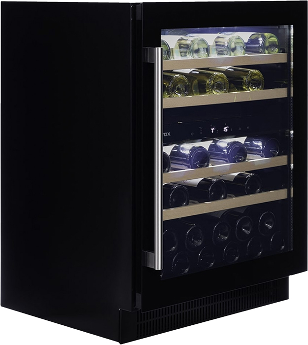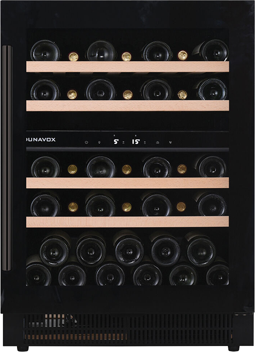 Винный холодильник Dunavox DAUF-39.121DMB имеет две температурные зоны, в которых одновременно можно хранить разные сорта алкоголя и выставлять разные сочетания настроек. Он встраивается в нишу, что удобно, если у вас ограничен метраж помещения. Благодаря компактным размерам данная модель — отличный выбор для офиса, гостиничного номера. Количество бутылок, которое можно разместить с учетом полной комплектации и из расчета объема бутылки 0,75 л, — 39 шт.