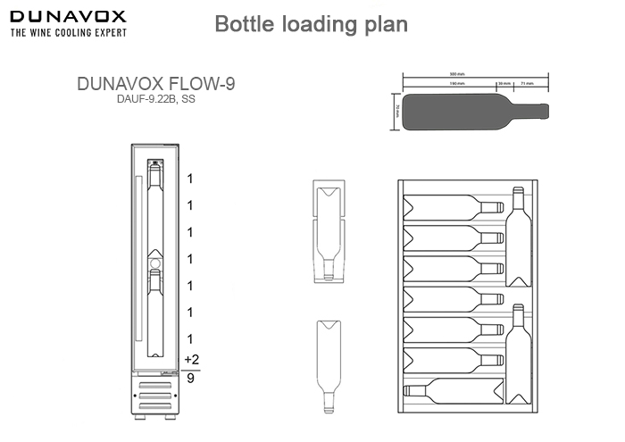 Винный холодильник Dunavox DAUF-9.22C имеет одну температурную зону, в которой можно разместить бутылки и единовременно выставить только одну комбинацию настроек. Он встраивается в нишу, что удобно, если у вас ограничен метраж помещения. Благодаря компактным размерам данная модель — отличный выбор для офиса, гостиничного номера. Количество бутылок, которое можно разместить с учетом полной комплектации и из расчета объема бутылки 0,75 л, — 9 шт.