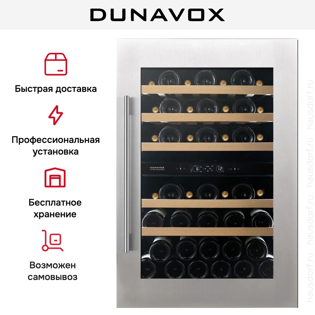 Светодиодное освещение камеры винного шкафа Dunavox позволяет не только беспрепятственно осматривать коллекцию, но и ярко подчеркнуть ее внешний вид. С использованием подсветки холодильник станет яркой частью дизайна, а LED лампы помогут экономить электроэнергию и прослужат долгие годы.